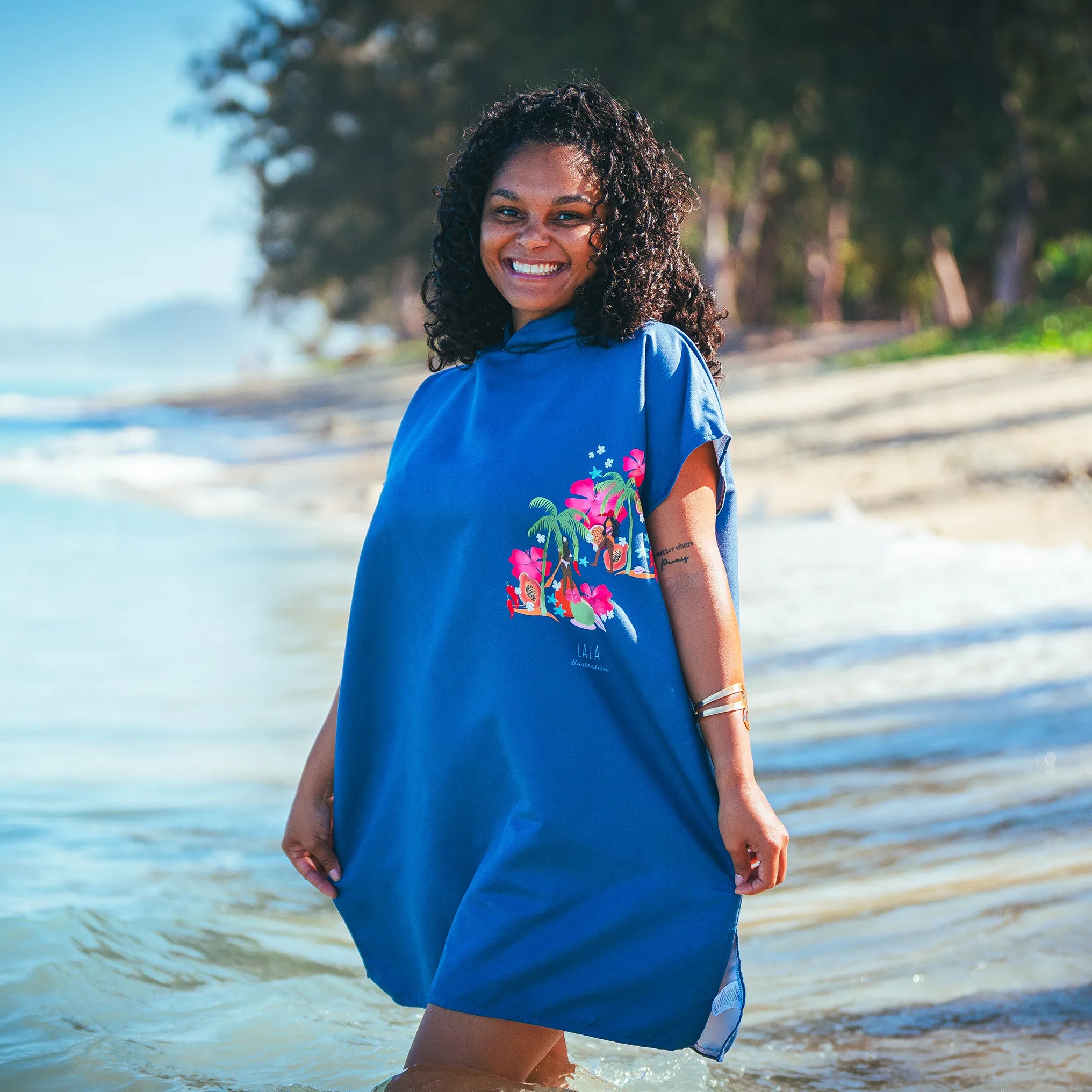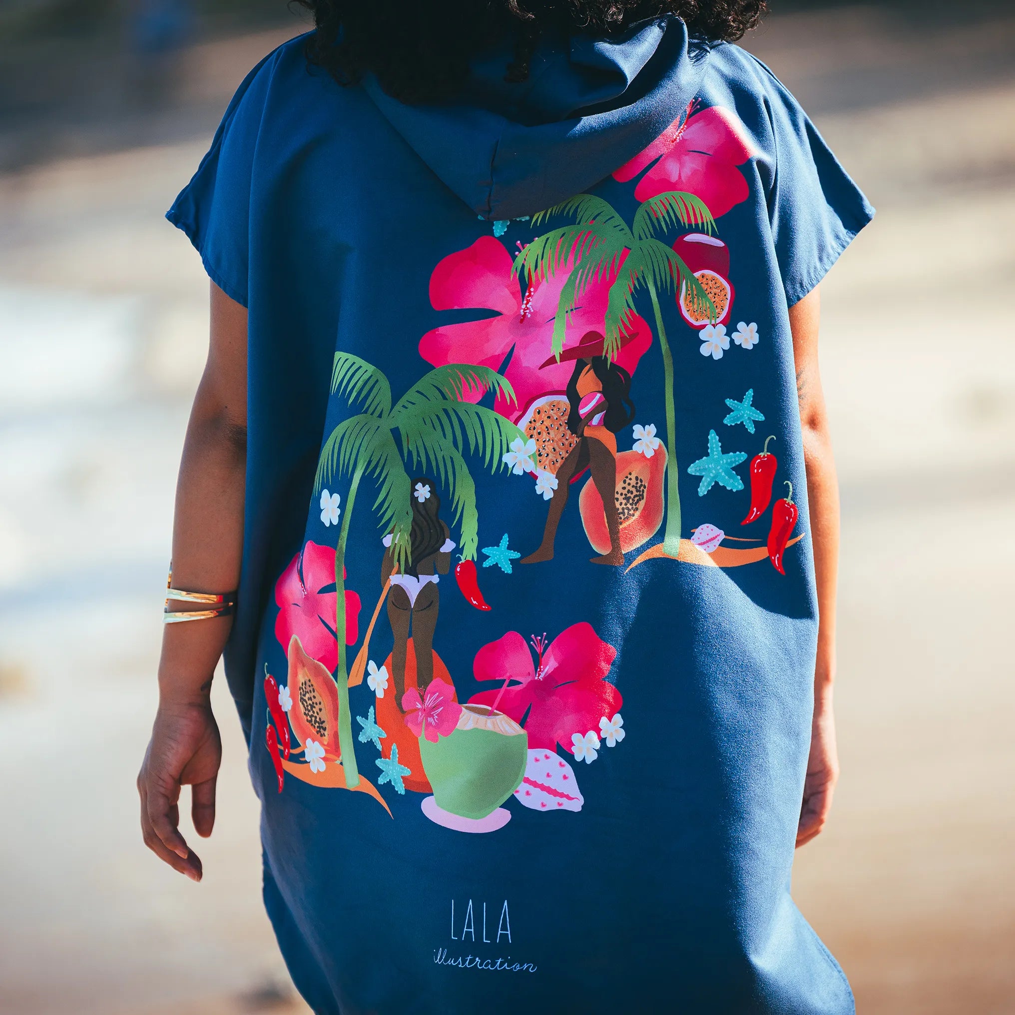 Spécialement conçu pour les enfants de 6 à 12 ans, ce poncho de plage est léger et ultra pratique. Dessiné par l'artiste Lala, il est trop chou et très utile pour les sorties plage, sport ou piscine.